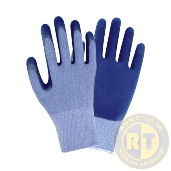 Перчатки трикотажные с частичным латексным покрытием кринкл р10 (синие, манжет) SIGMA (9445501) предназначены для защиты от механических воздействий, от порезов и имеют хорошее сцепление как с сухими так и с влажными поверхностями.