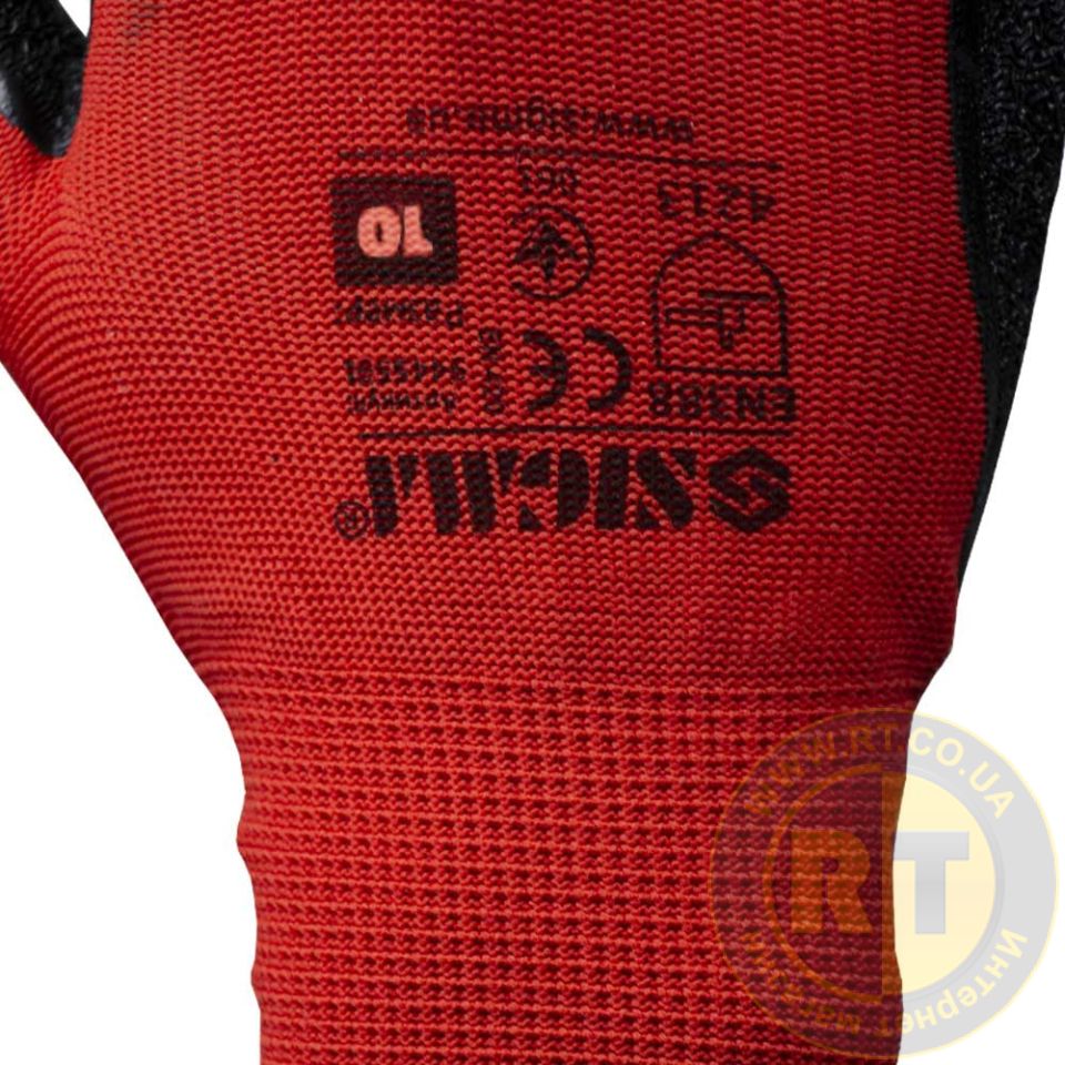 Перчатки трикотажные с частичным латексным вспененным покрытием р10 (черные, манжет) SIGMA (9445581) предназначены для защиты от механических воздействий, от порезов, проколов и имеют хорошее сцепление как с сухими так и с влажными поверхностями.