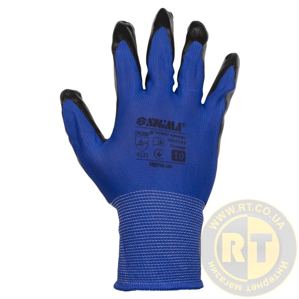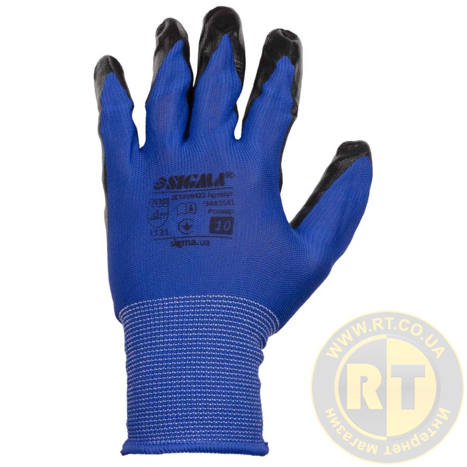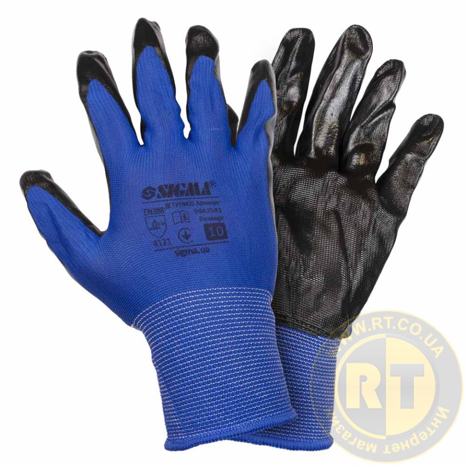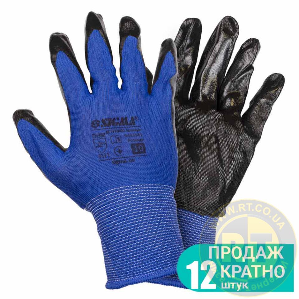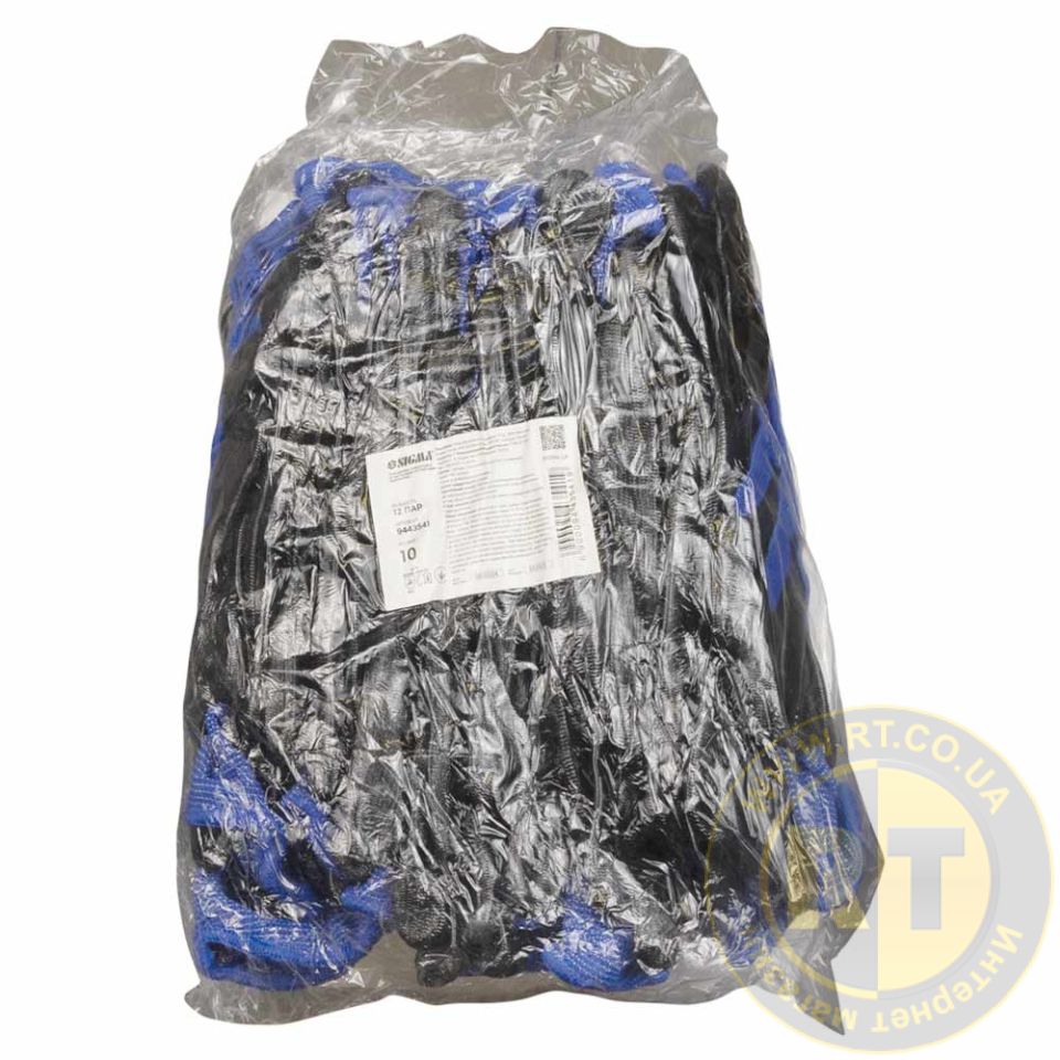 Перчатки трикотажные с частичным нитриловым покрытием р10 (сине-черные манжет) КРАТНО 12 парам SIGMA (9443541)