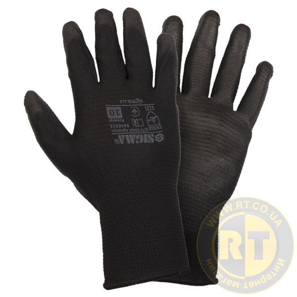 Перчатки трикотажные с частичным ПУ покрытием р10 (черно-серые манжет) SIGMA (9446411)