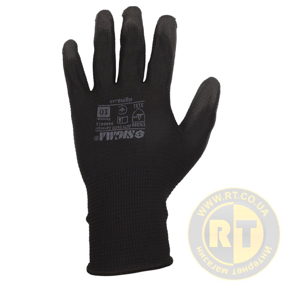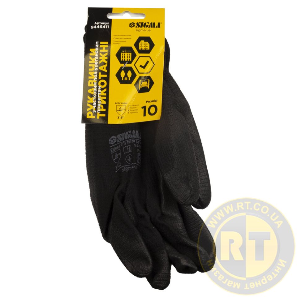 Перчатки трикотажные с частичным ПУ покрытием р10 (черно-серые манжет) SIGMA (9446411)
