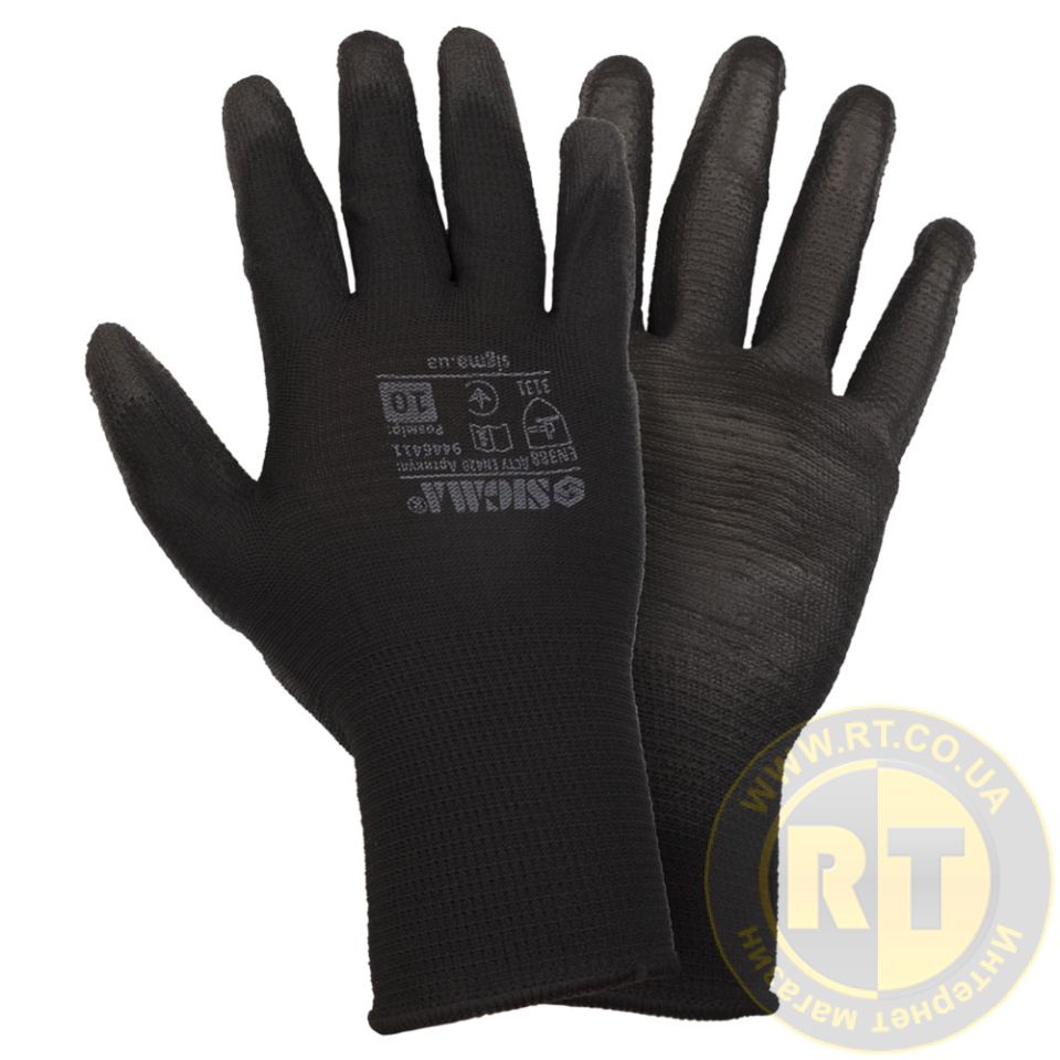 Перчатки трикотажные с частичным ПУ покрытием р10 (черно-серые манжет) SIGMA 9446411