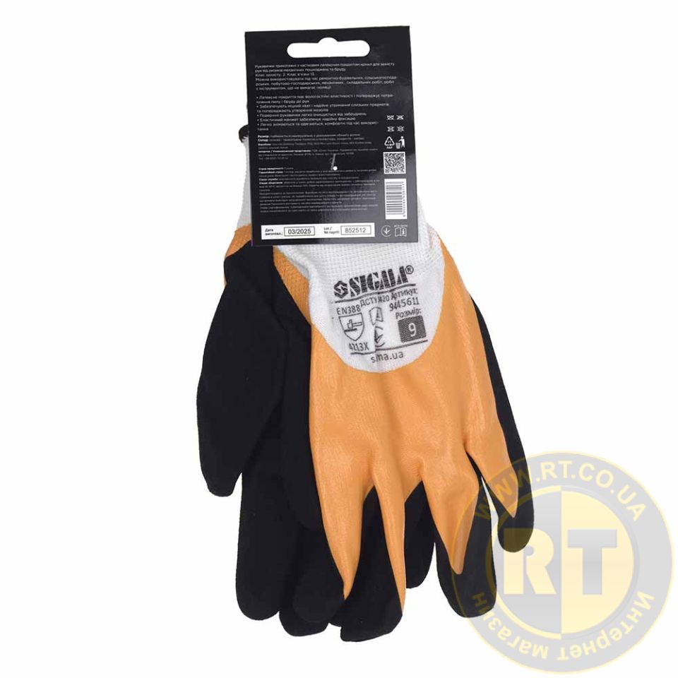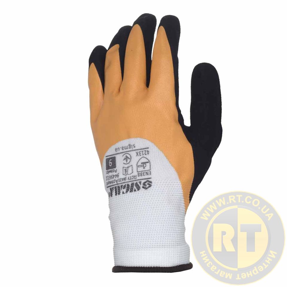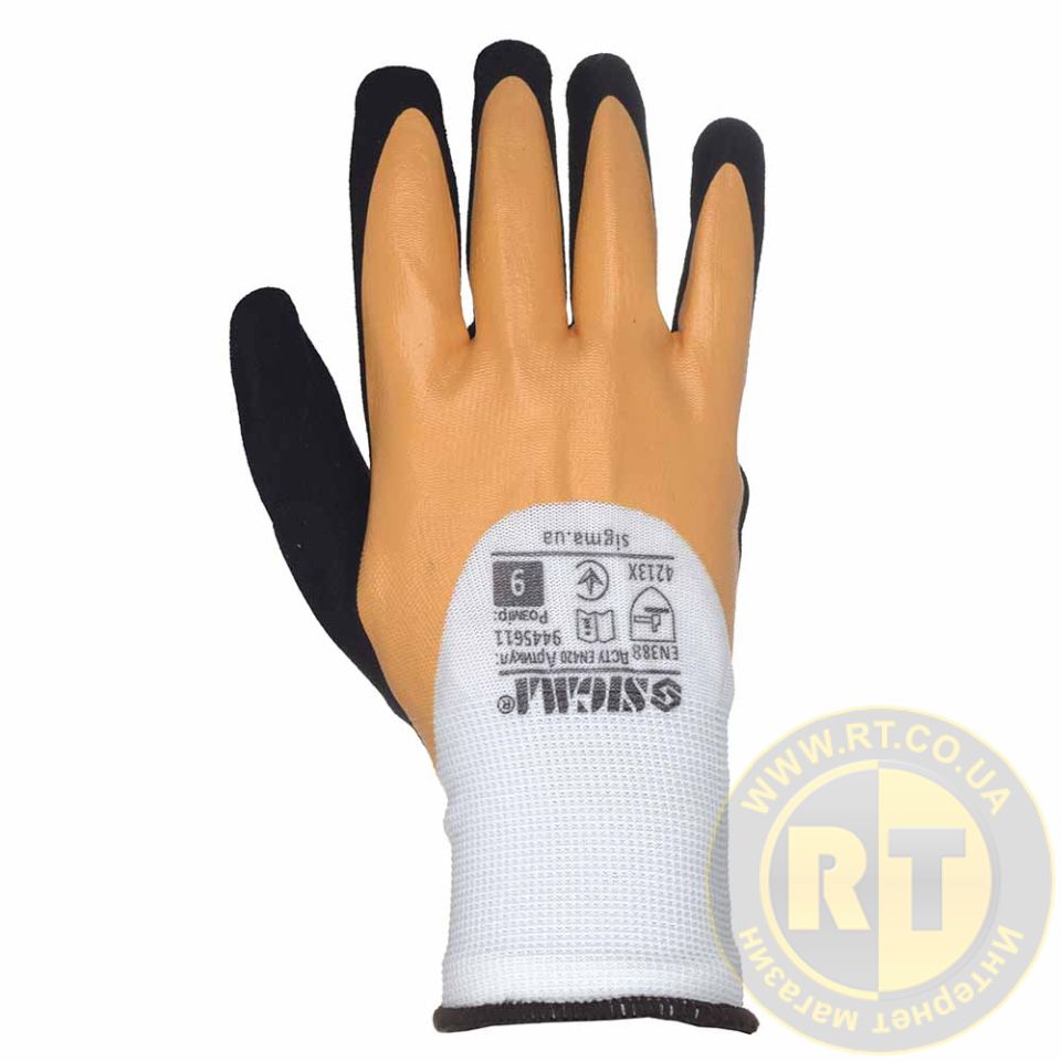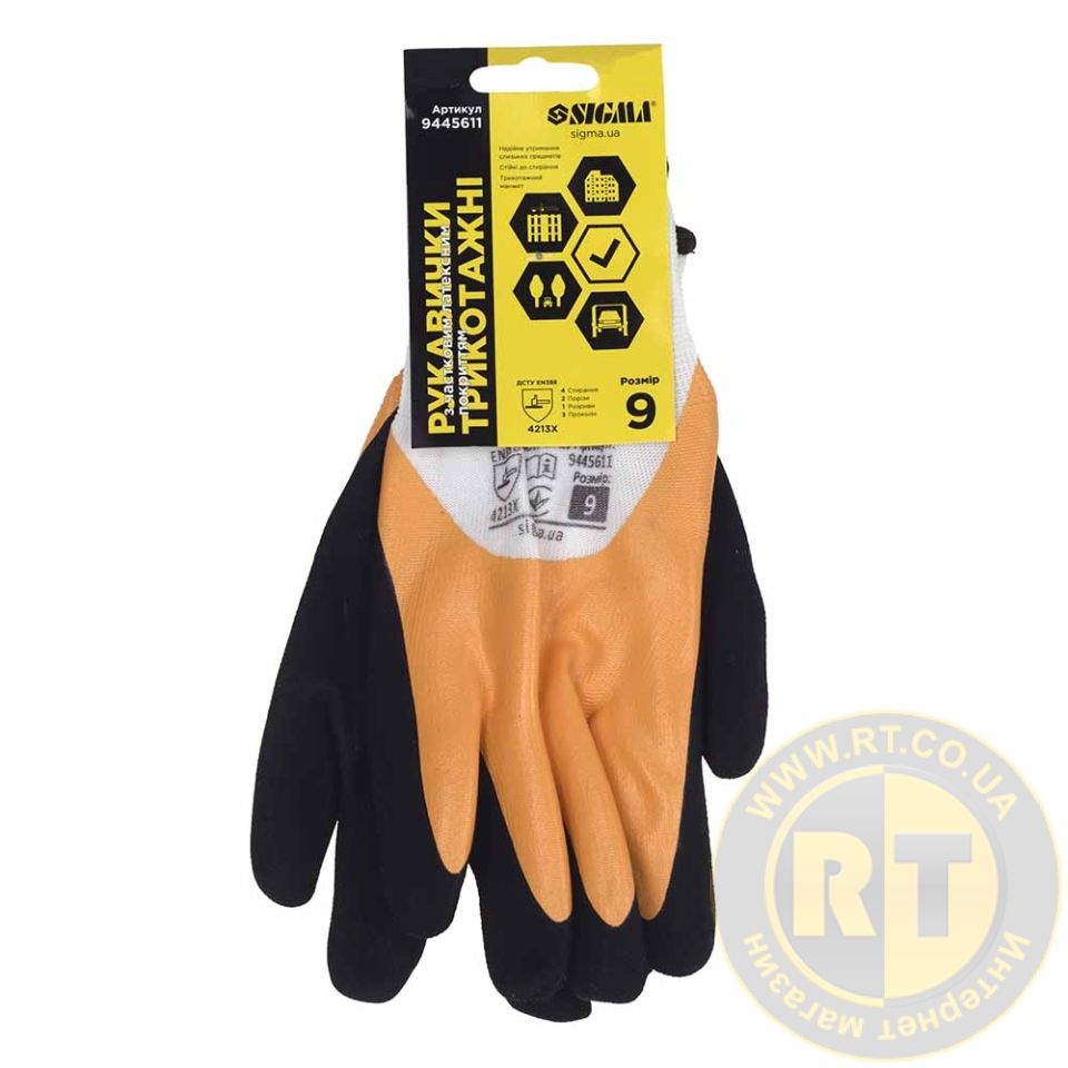 Перчатки трикотажные с двойным латексным покрытием р9 (оранжево-чёрные манжет) SIGMA 9445611