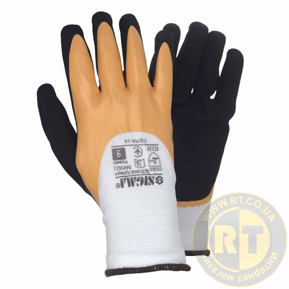Перчатки трикотажные с двойным латексным покрытием р9 (желто-черные, манжет) SIGMA (9445611) предназначены для защиты от механических воздействий, жира и масла.