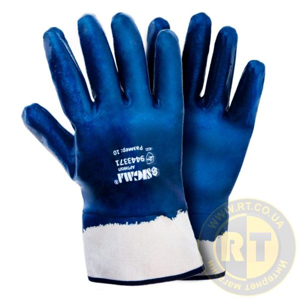 Перчатки трикотажные с нитриловым покрытием р10 (синие краги) 120 пар SIGMA (9443371) предназначены для защиты рук от воздействий масел, жиров, нефтепродуктов, а также механических воздействий.