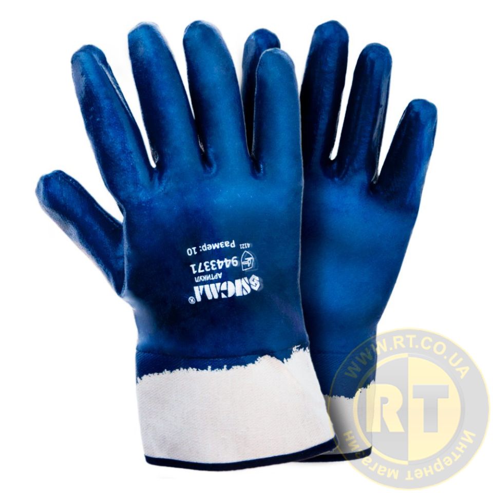 Перчатки трикотажные с нитриловым покрытием р10 (синие краги) 120 пар SIGMA 9443371