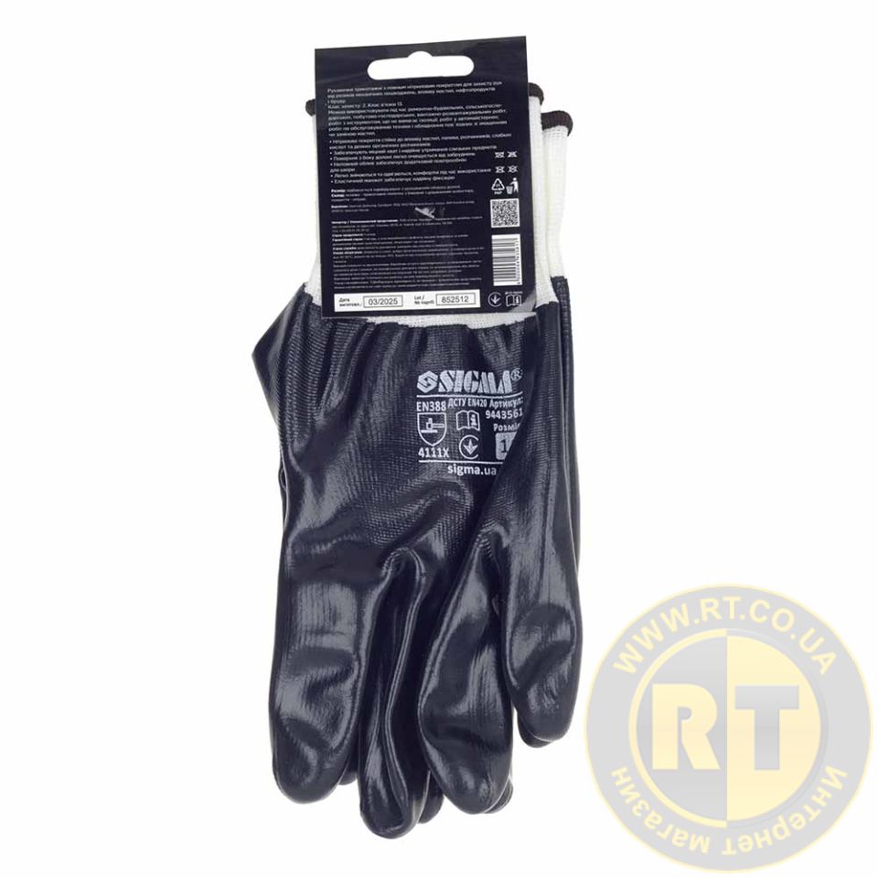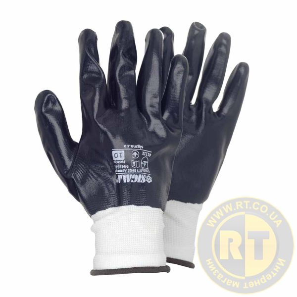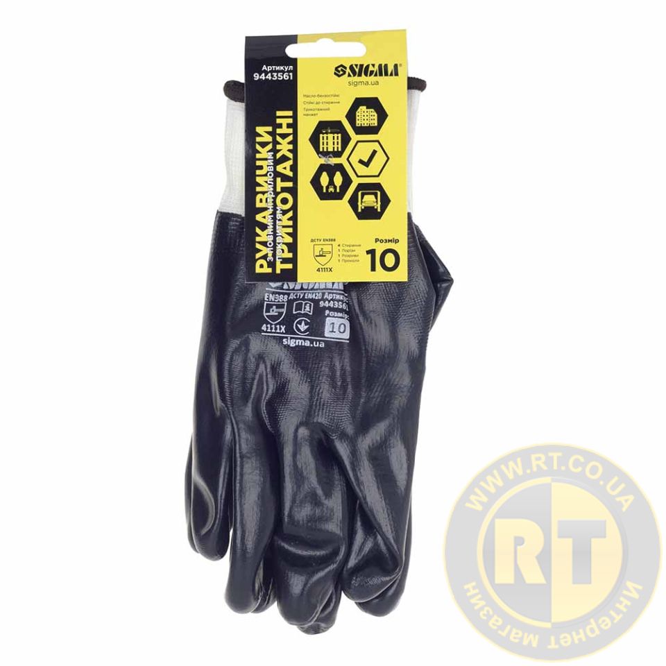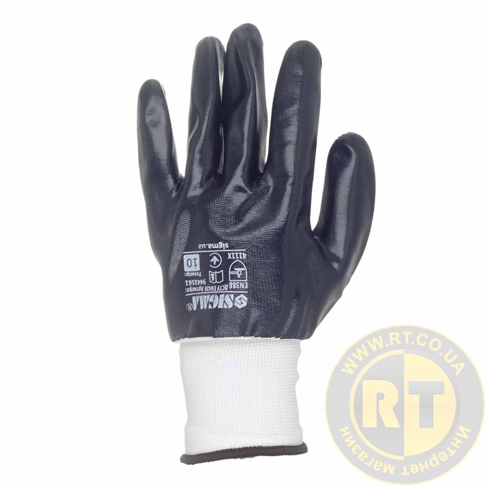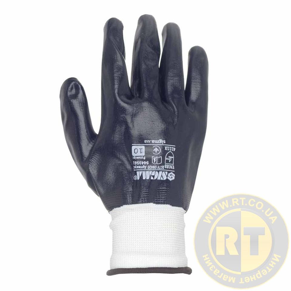 Перчатки трикотажные с полным нитриловым покрытием р10 (черные, манжет) SIGMA 9443561