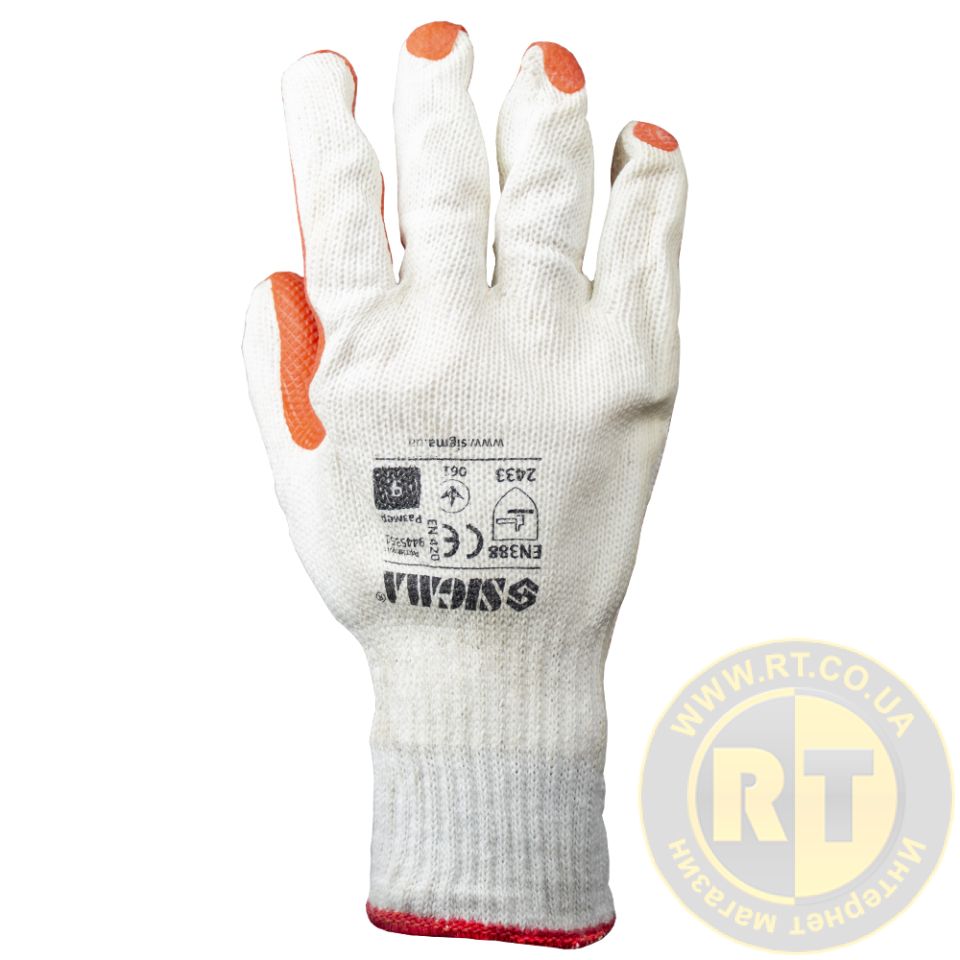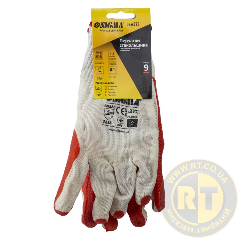 Перчатки трикотажные стекольщика с двойным латексным покрытием р9 (красные манжет) SIGMA (9445351) - трикотажные с латексным покрытием для защиты рук от влаги и механических воздействий.