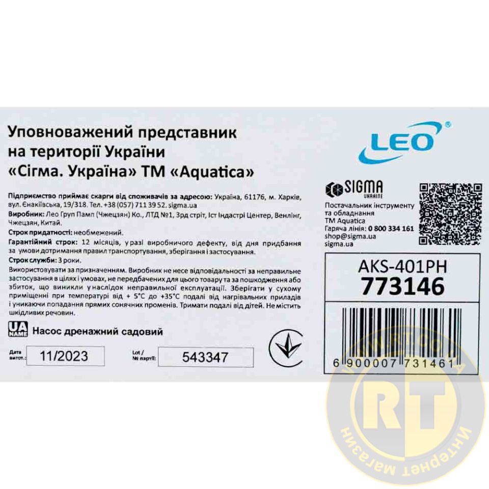 Насос дренажный садовый 0.4кВт Hmax 6м Qmax 150л/мин LEO AKS-401PH (773146)