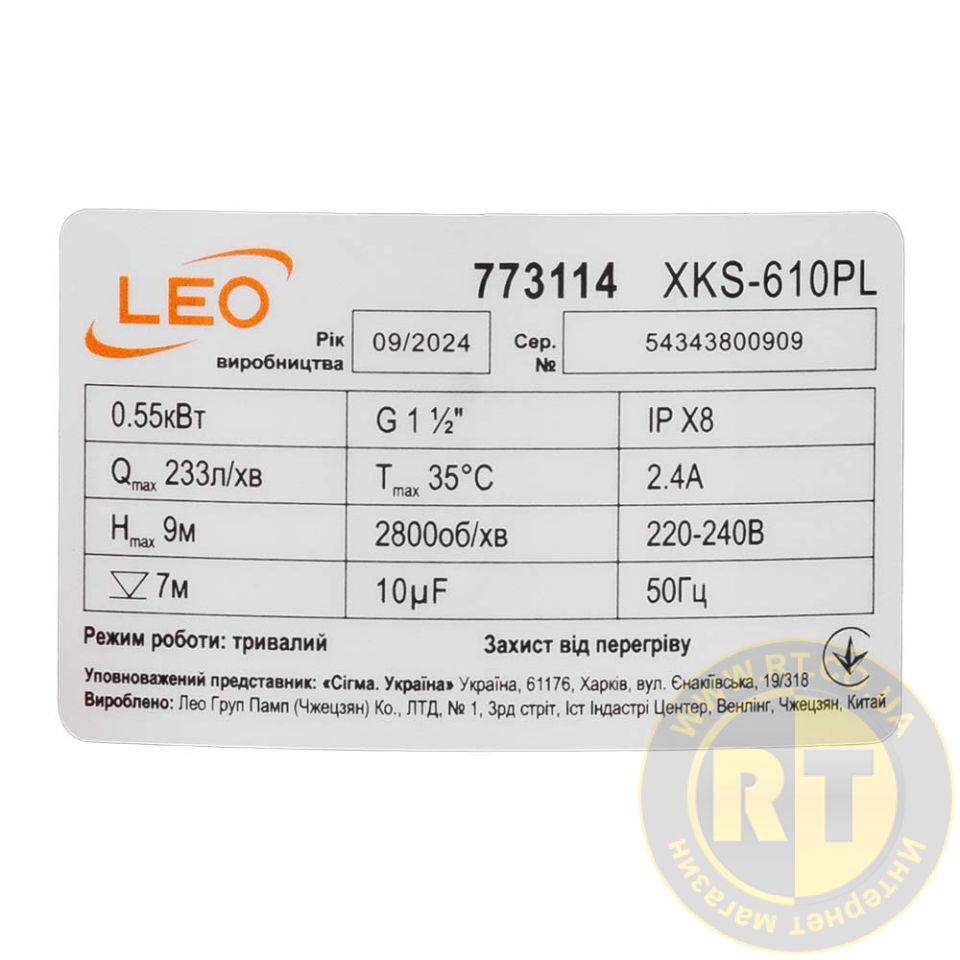 Насос дренажный садовый 0.55кВт Hmax 9м Qmax 233л/мин (част. до 5мм) LEO 773114