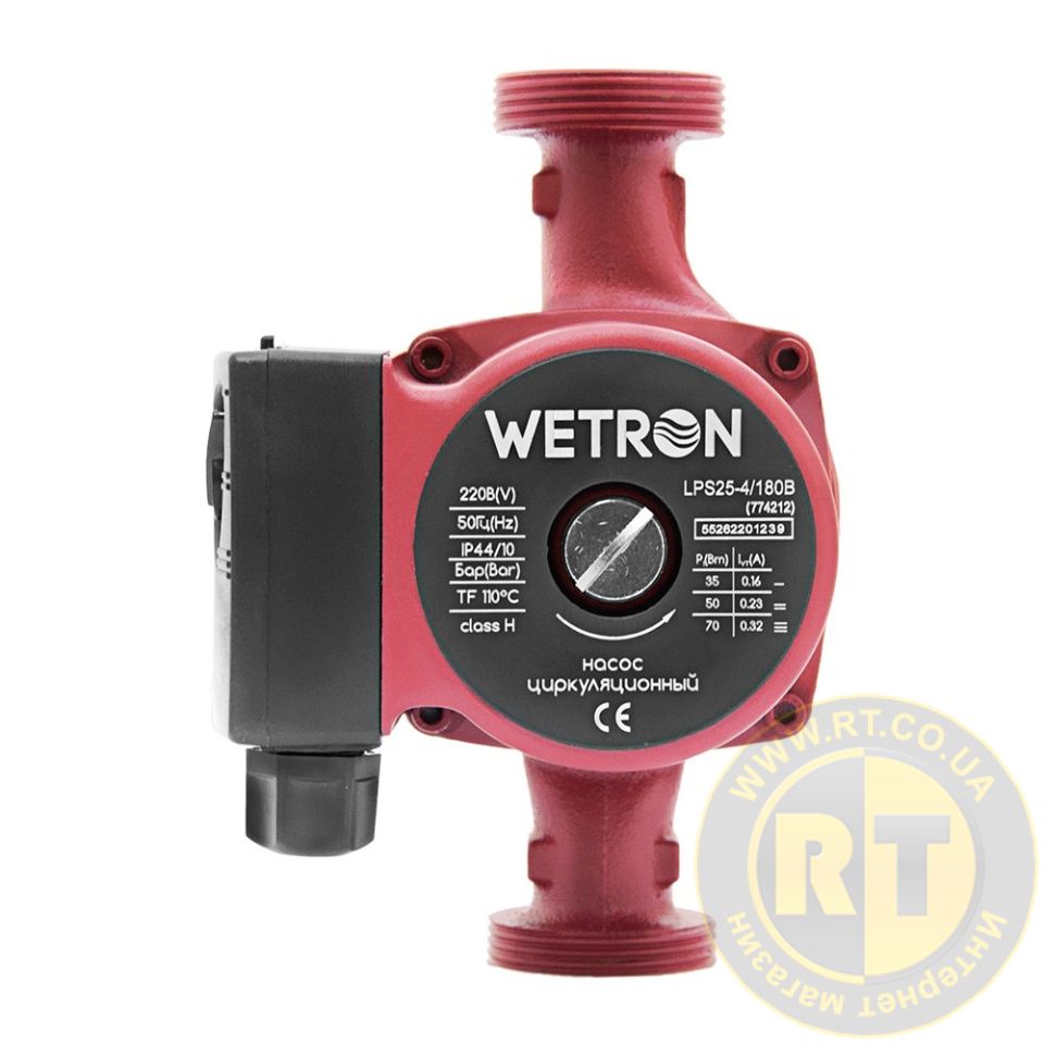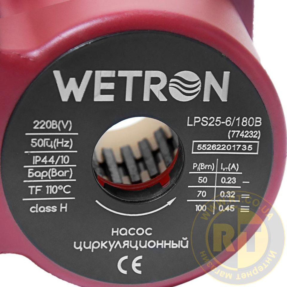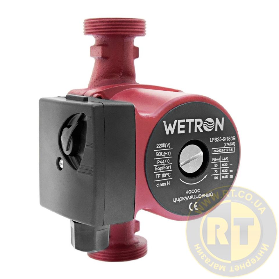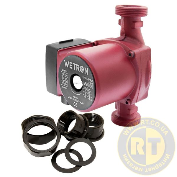 Насос циркуляционный 100Вт Hmax 6м Qmax 50л/мин Ø1½" 180мм бордо + гайки Ø1" WETRON LPS25-6/180B (774232)