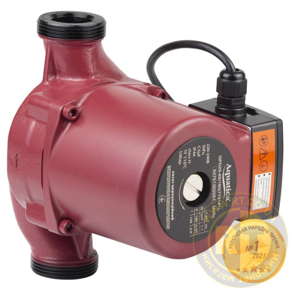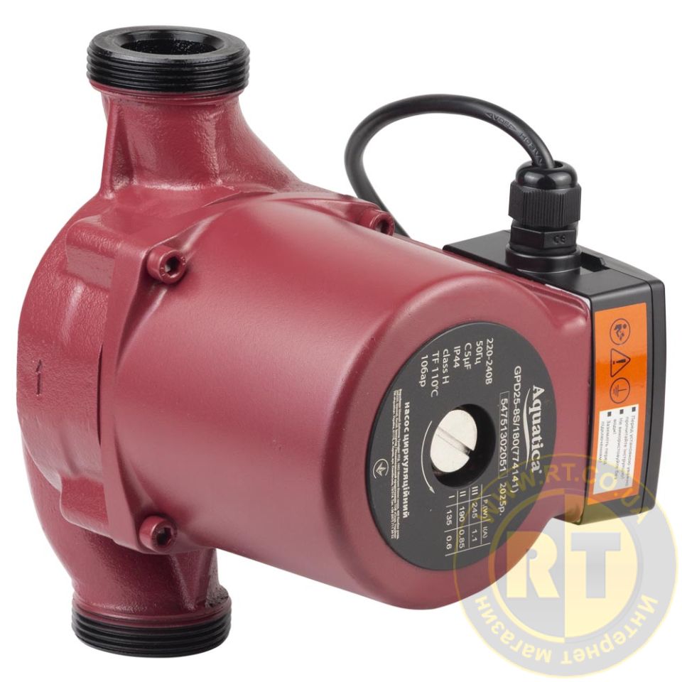 Насос циркуляционный 245Вт Hmax 8м Qmax 200л/мин Ø1½" 180мм + гайки Ø1" AQUATICA (774141)