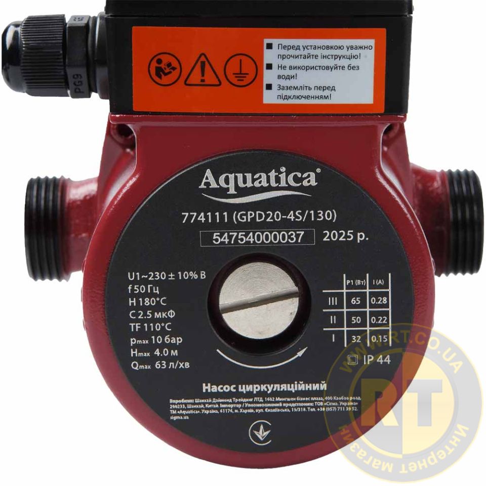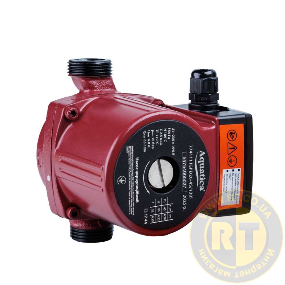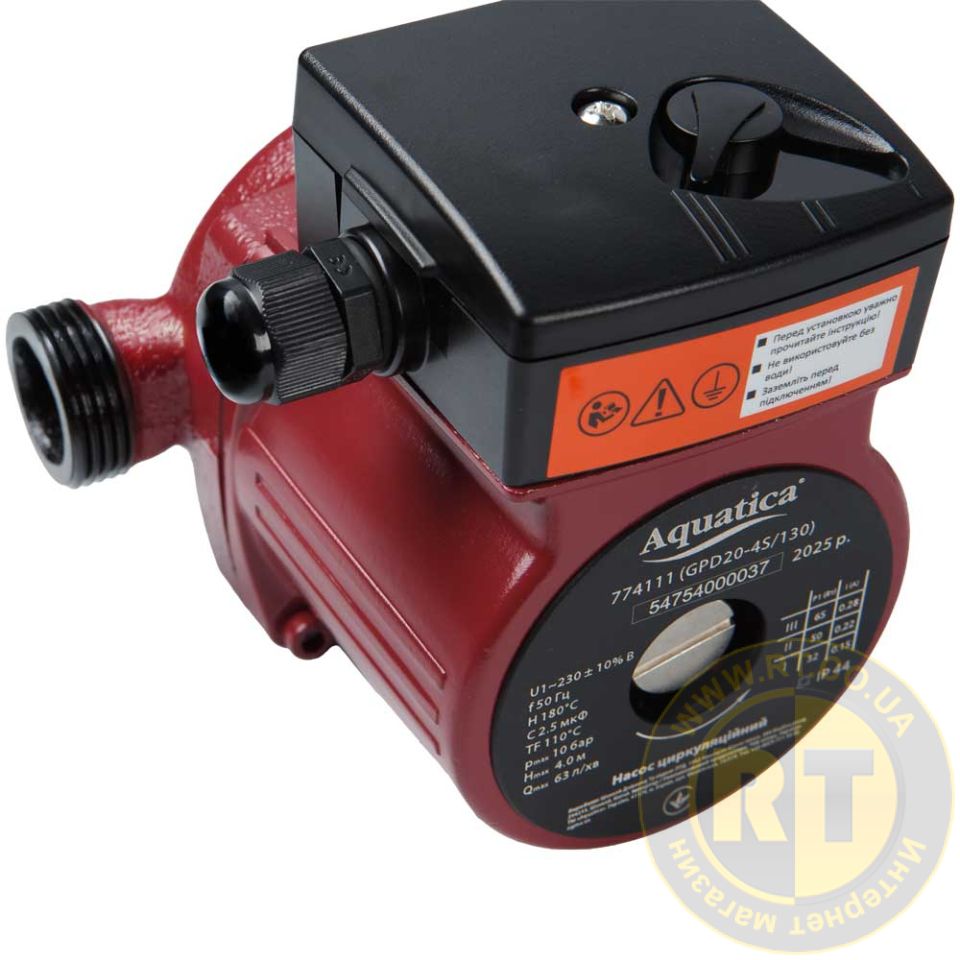 Насос циркуляционный 65Вт Hmax 4м Qmax 63л/мин Ø1" 130мм + гайки Ø¾" AQUATICA (774111)