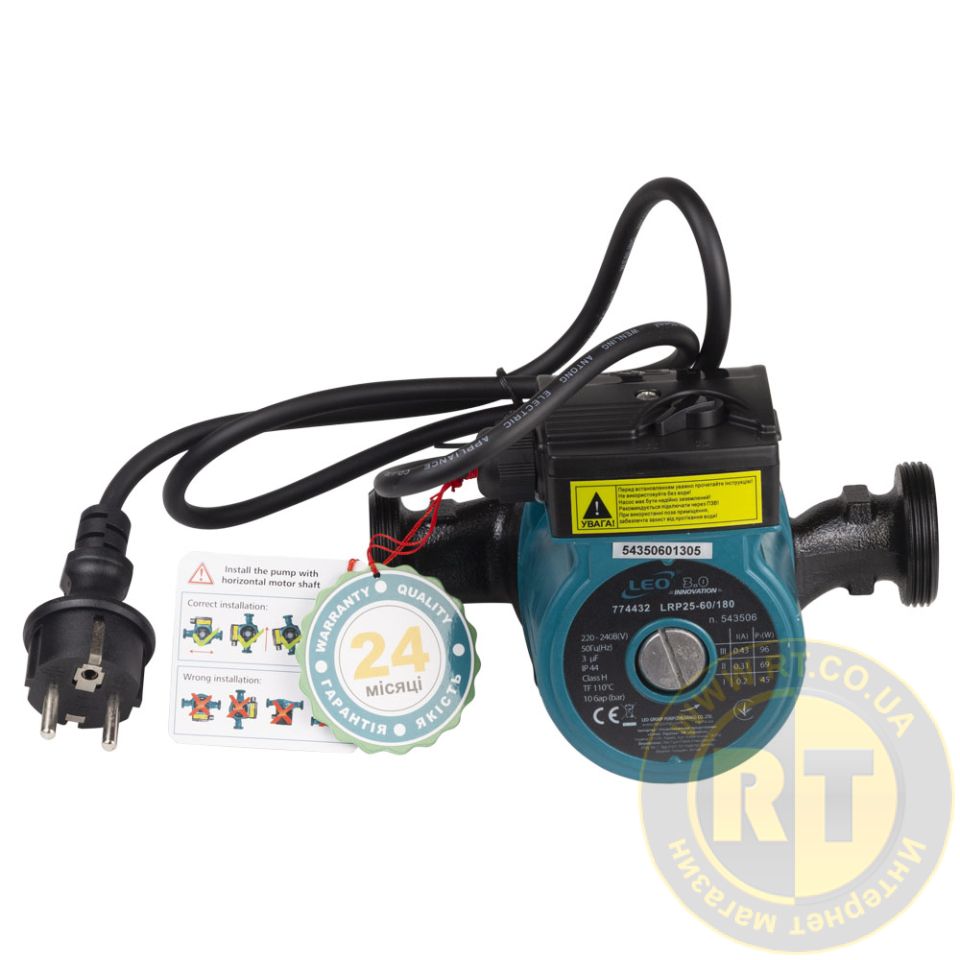 Насос циркуляционный 96Вт Hmax 6м Qmax 66л/мин Ø1½" 180мм + гайки Ø1" LEO 3.0 LRP25-60/180 (774432)