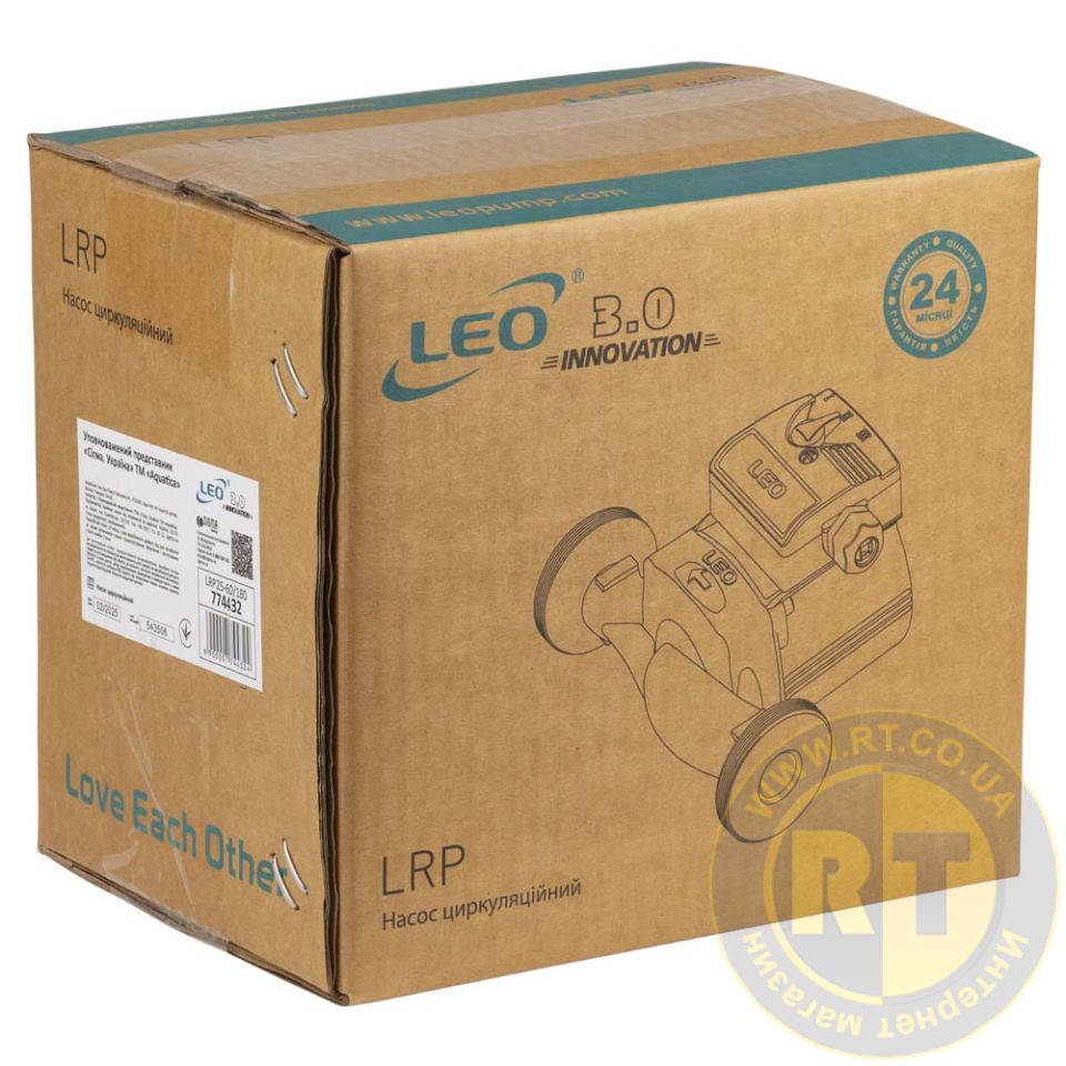 Насос циркуляционный 96Вт Hmax 6м Qmax 66л/мин Ø1½" 180мм + гайки Ø1" LEO 3.0 LRP25-60/180 774432