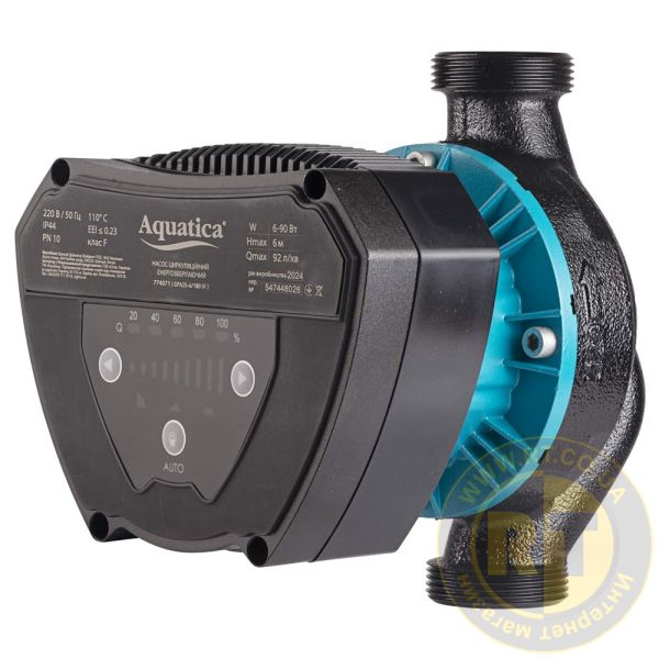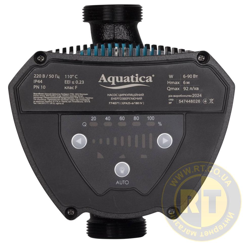 Насос циркуляционный энергосберегающий 6-90Вт Hmax 6м Qmax 92л/мин Ø1½" 180мм + гайки Ø1" AQUATICA GPA25-6/180 IV 774071