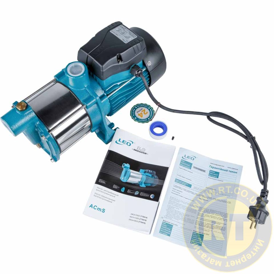 Насос центробежный многоступенчатый 0.6кВт Hmax 35м Qmax 100л/мин нерж LEO 3.0 3ACm100S (775414)