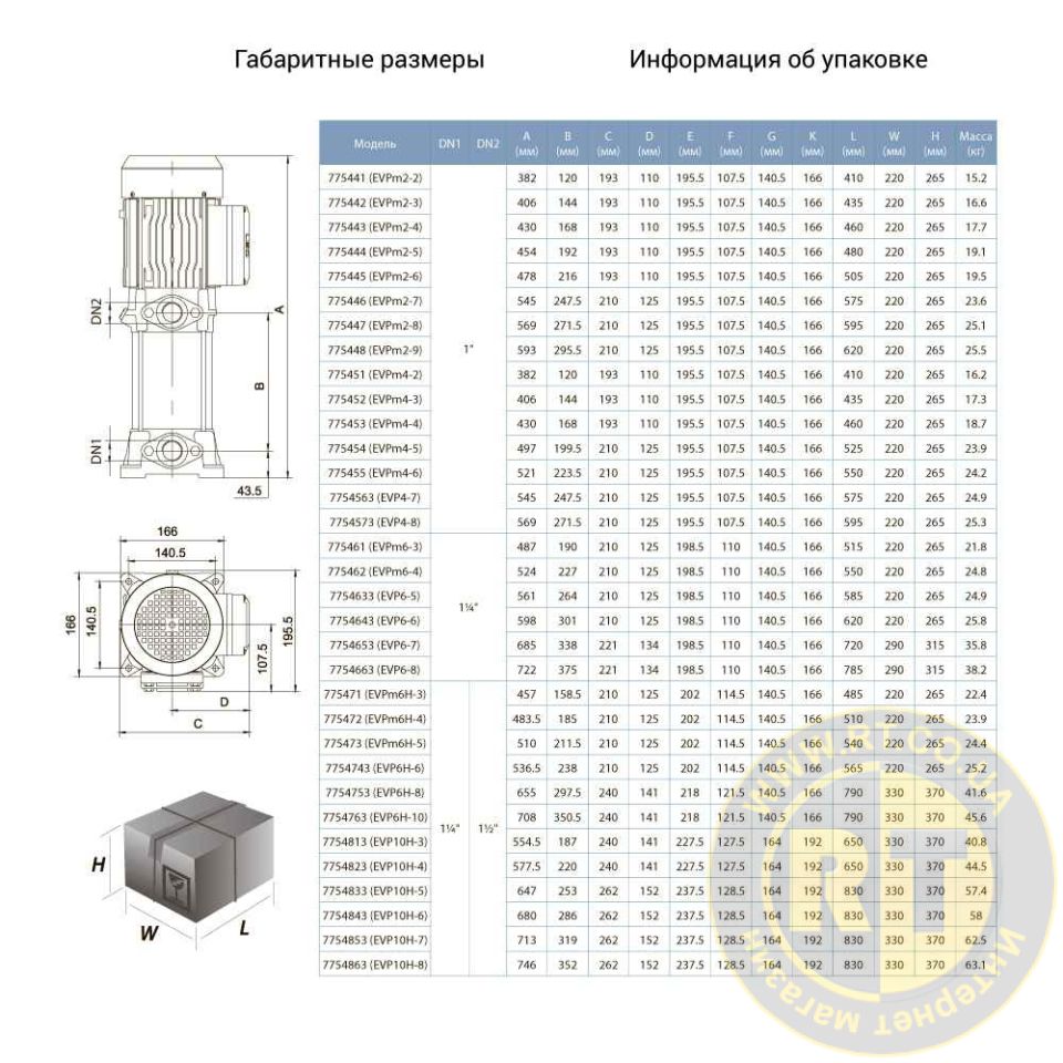 Насос центробежный многоступенчатый вертикальный 400В 3.0кВт Hmax 78м Qmax 170л/мин LEO 3.0 EVP6-8 7754663