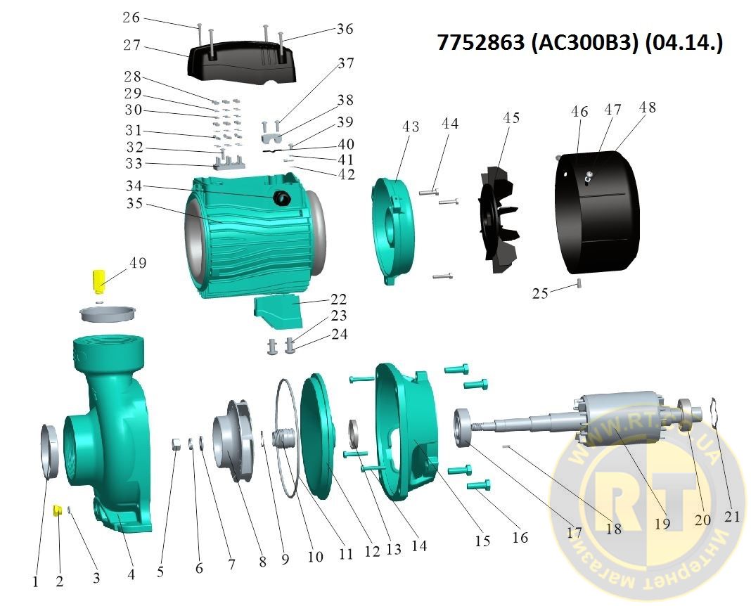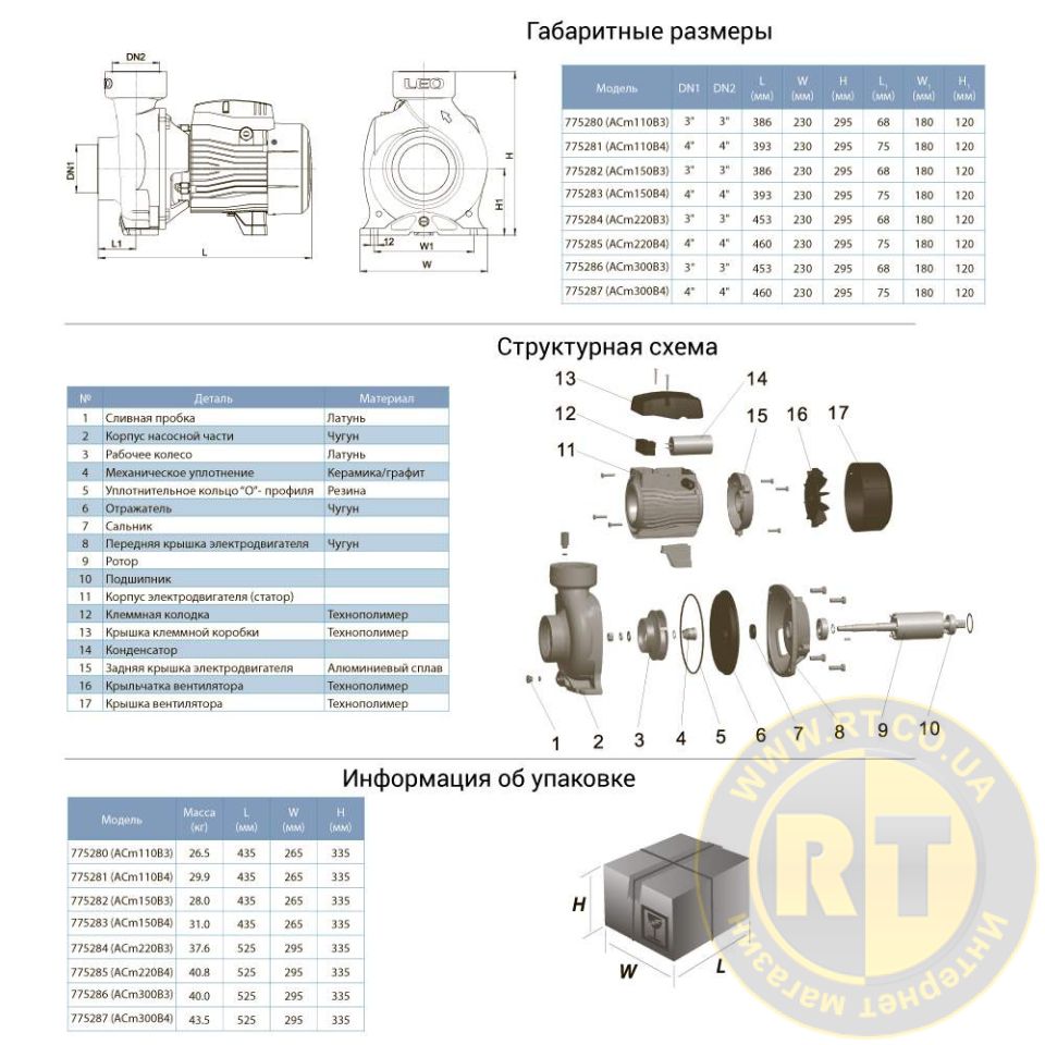 Насос центробежный 400В 3.0кВт Hmax 20м Qmax 1200л/мин 3" LEO 3.0 AC300B3 7752863