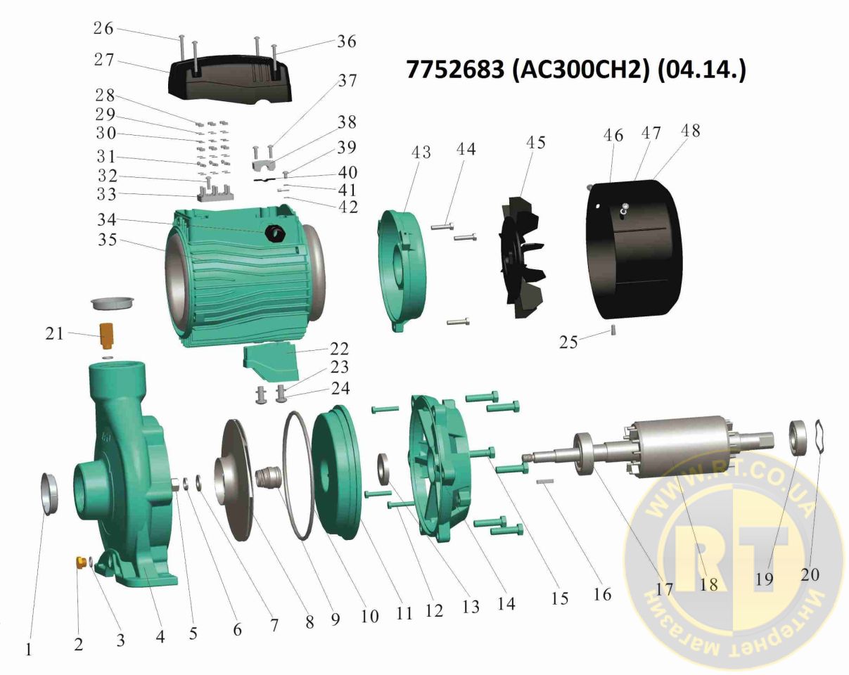 - Рабочее колесо: нержавеющая сталь AISI 304