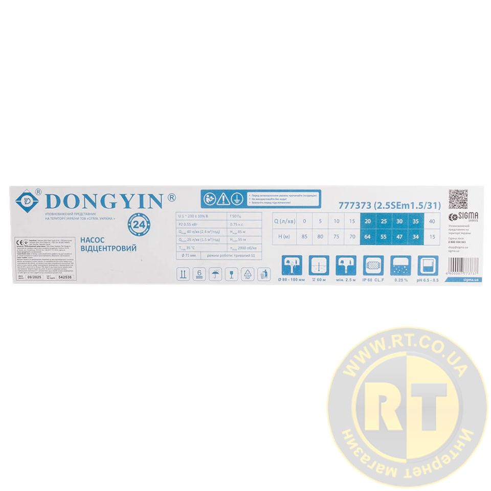 Насос центробежный скважинный 0.55кВт H 85(55)м Q 40(25)л/мин Ø66мм (кабель 45м) DONGYIN 2.5SEm1.8/31 (777373)