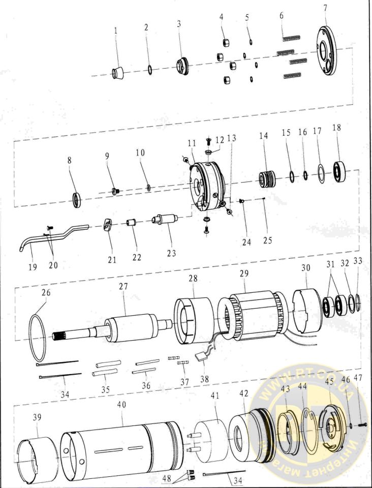 - Тип двигателя: асинхронный, маслонаполненный, со встроенной в обмотку термозащитой