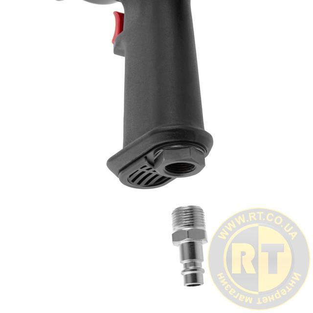 Благодаря пистолетной форме гайковерт удобно держать в руке, имеет отличную балансировку. Обрезиненная ручка обеспечивает надёжную фиксацию инструмента в руке. Комплектуется латунным универсальным фитингом для легкого подключения к пневматическому шлангу с быстроразъемным соединением.