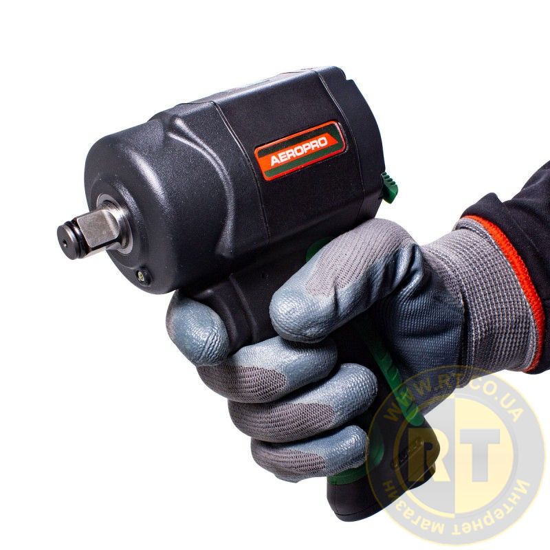 - Эргономичная рукоятка — пневмогайковерт не проскальзывает в руке, что позволяет обеспечить надежный хват.