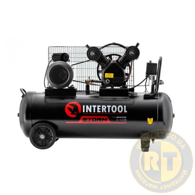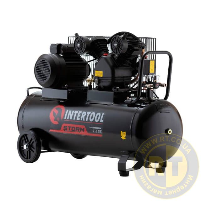 Компрессор, 100 л, 3,0 кВт, 220 В, 10 атм, 500 л/мин, 2 цилиндра, 83 дБ INTERTOOL PT-0014