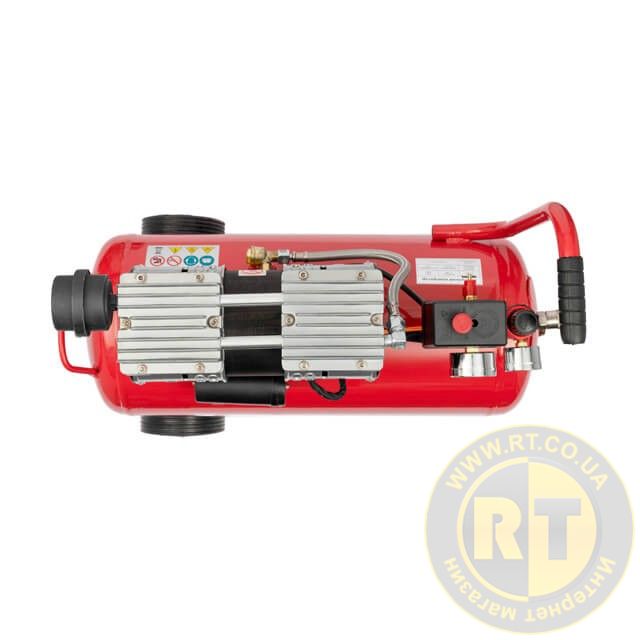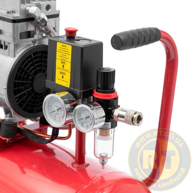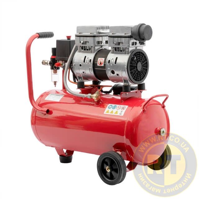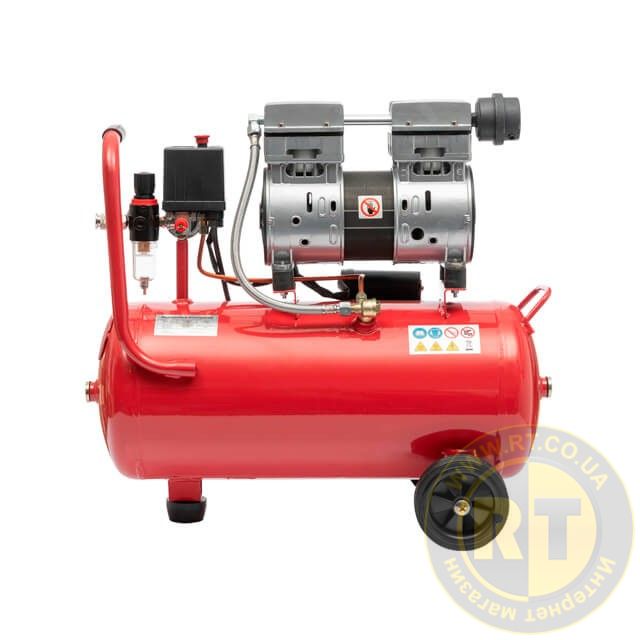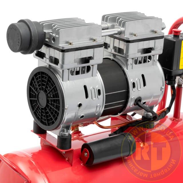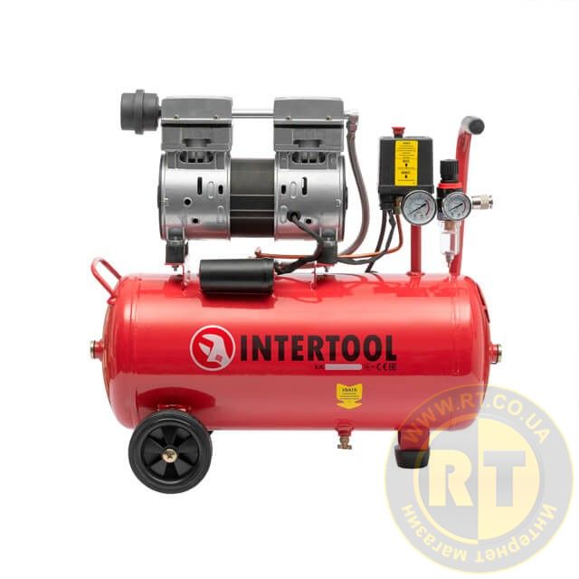 Компрессор, 24 л, 0,75 кВт, 230 В, 8 атм, 145 л/мин, 1400 об/мин, малошумный, безмасляный, 2 цилиндра, 63 дБ INTERTOOL PT-0022