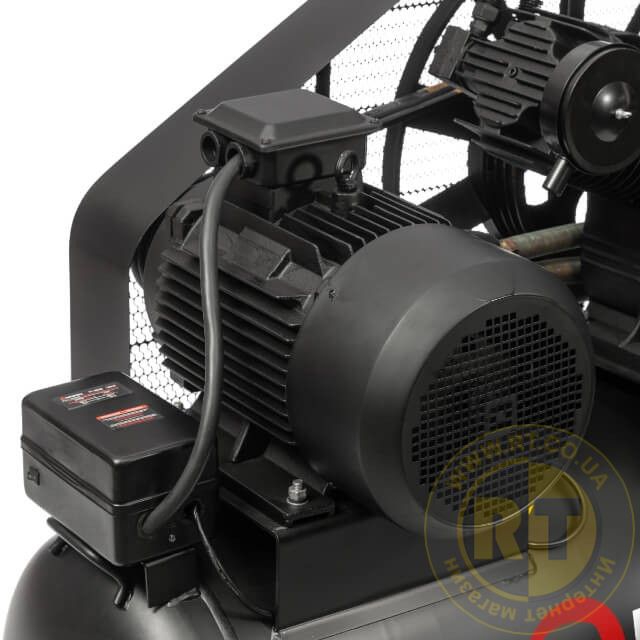 Компрессор имеет ременной привод от электродвигателя к головке с тремя стальными цилиндрами. Это обеспечивает эффективное охлаждение и уменьшает нагрузку на двигатель. Медная обмотка двигателя увеличивает ресурс службы, повышает прочность и выносливость компрессора, что подтверждает 3 года гарантии.