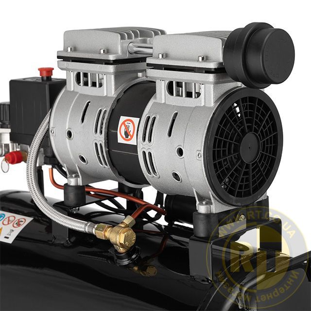 Компрессор PT-0019 обеспечивает безопасную и стабильную работу благодаря системе автоматического включения и отключения при достижении заданного уровня давления (до 8 атм). Для внештатных ситуаций установлен предохранительный клапан, который открывается, если вдруг давление в ресивере достигло 8,5 атм.