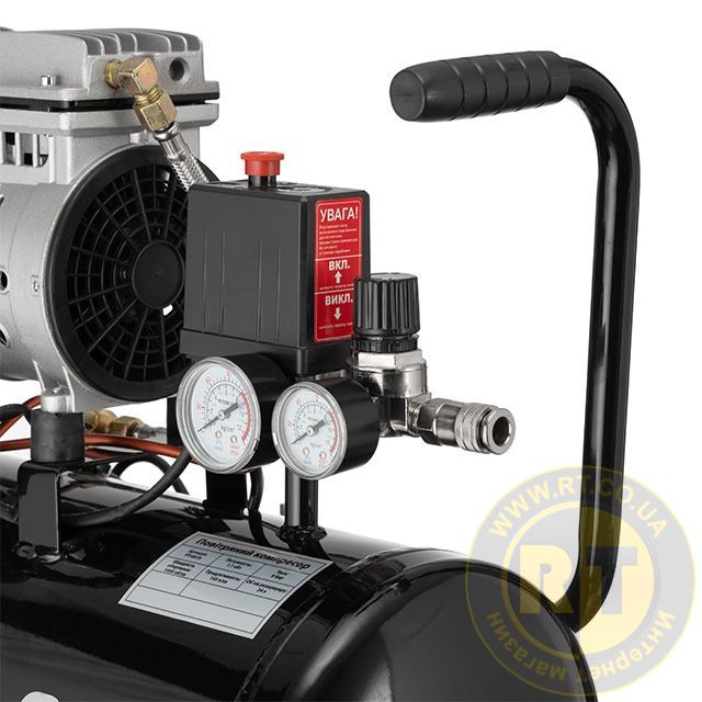 Для регулировки давления в ресивере и на выходе установлены два манометра с редуктором, что позволяет регулировать и постоянно поддерживать выходное давление необходимое вашему инструменту или оборудованию.