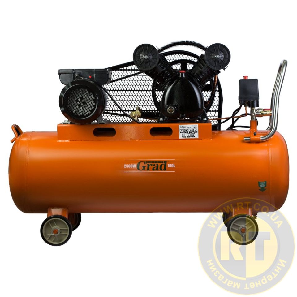 Компрессор двухцилиндровый ременной (V) 2.5кВт 378л/мин 8бар 100л (2 крана) GRAD 7044185