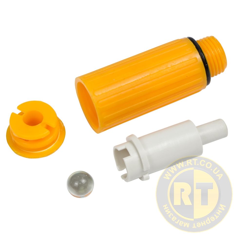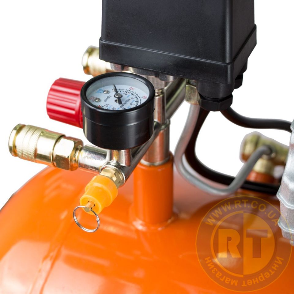 Предохранительный клапан срабатывает при повышении предельного давления, позволяя защитить детали пневмосистемы от аварийных поломок. В нижней части ресивера имеется специальная дренажная пробка, которая позволяет просто и быстро сливать конденсат.