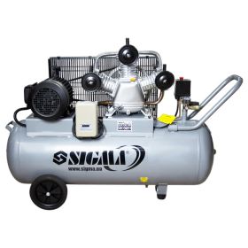 Компрессор двухцилиндровый ременной (II) 380В 4кВт 678л/мин 10бар 100л 2 крана SIGMA 7044521