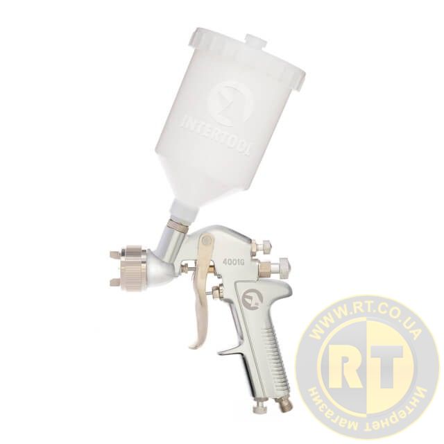 Краскопульт пневматический HP, форсунка 1.4мм, верхний пластиковый бачок 600мл, 5бар INTERTOOL PT-0112