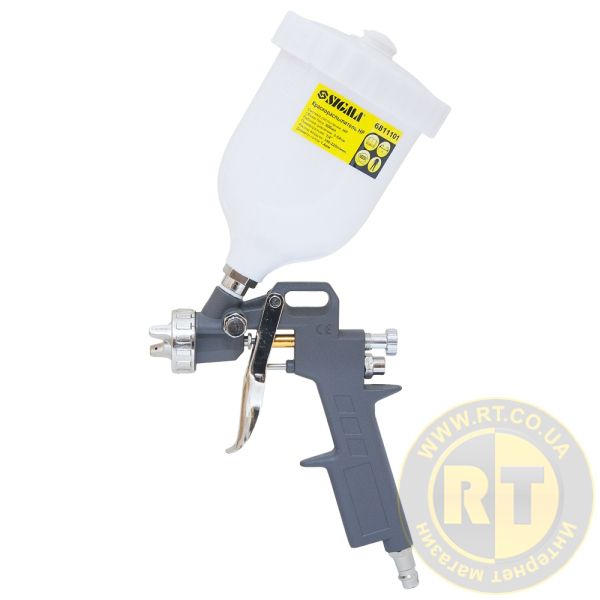Краскораспылитель HP Ø1.4мм 85-225л/мин 3.5бар в/б 600мл (пласт) SIGMA (6811101) с классической системой распыления HP (высокое давление, низкий расход воздуха) с верхней подачей краски.