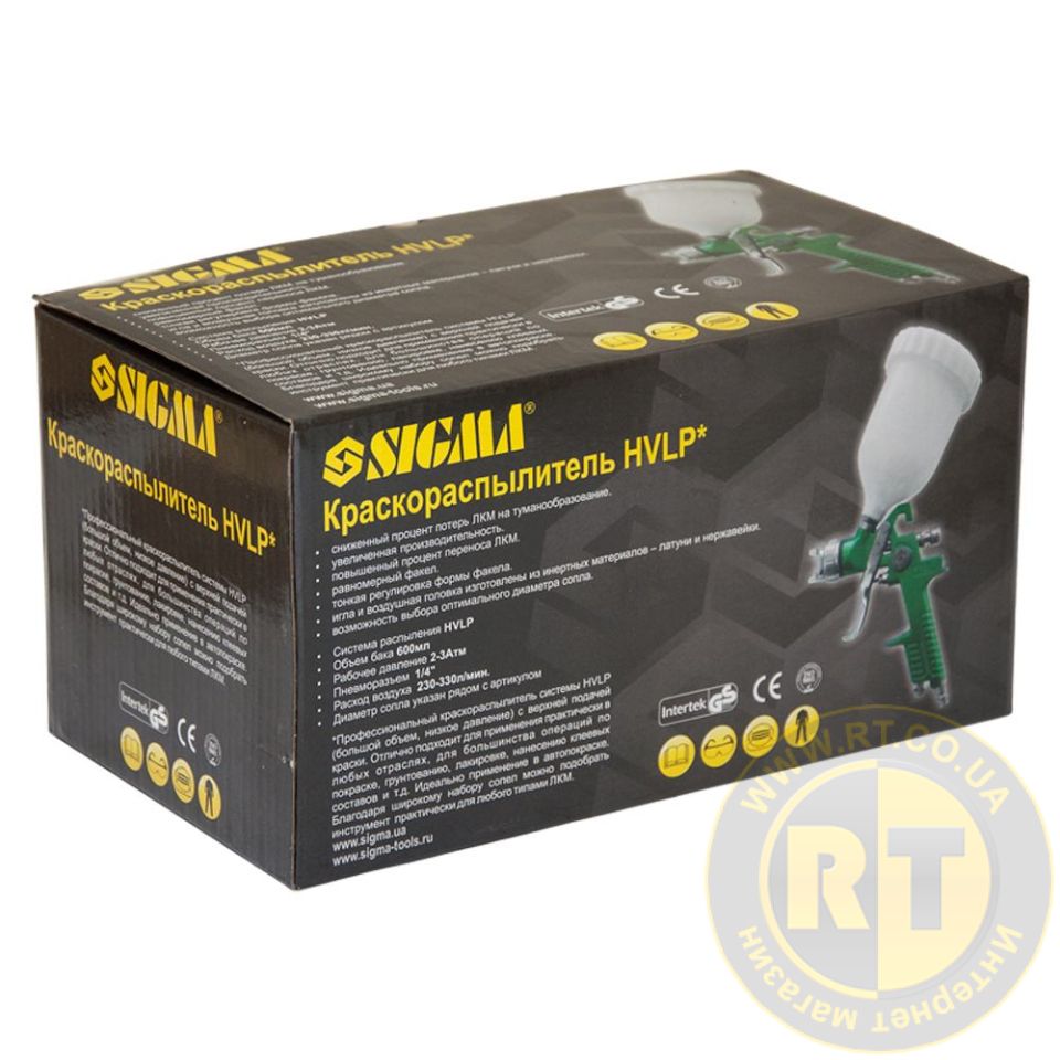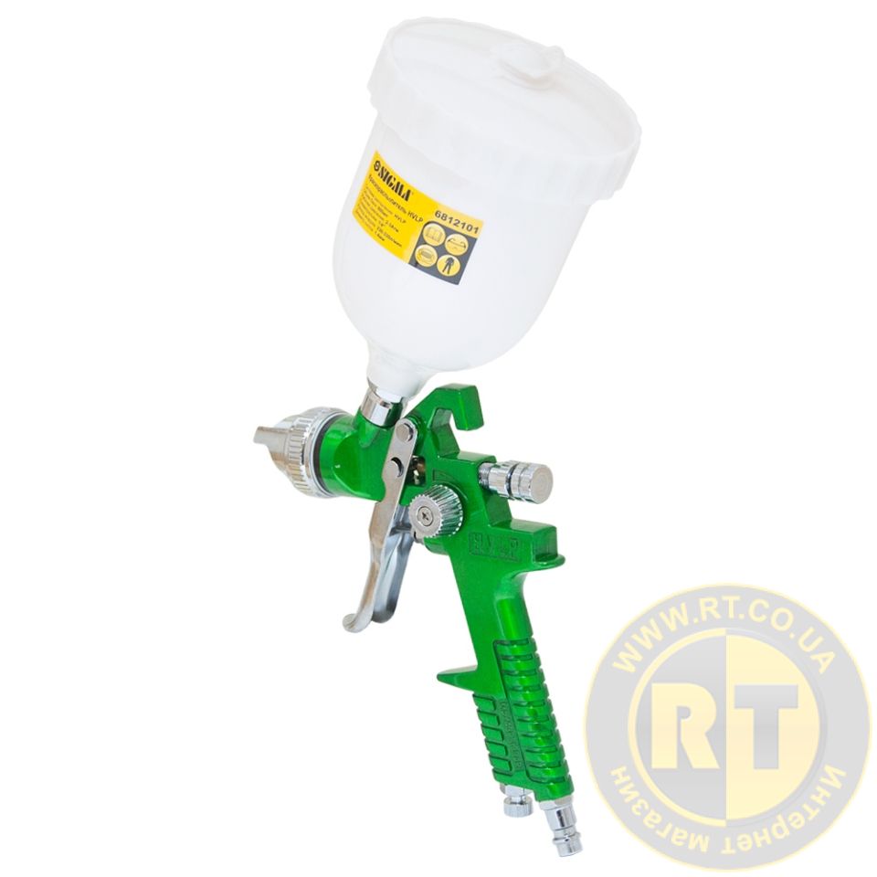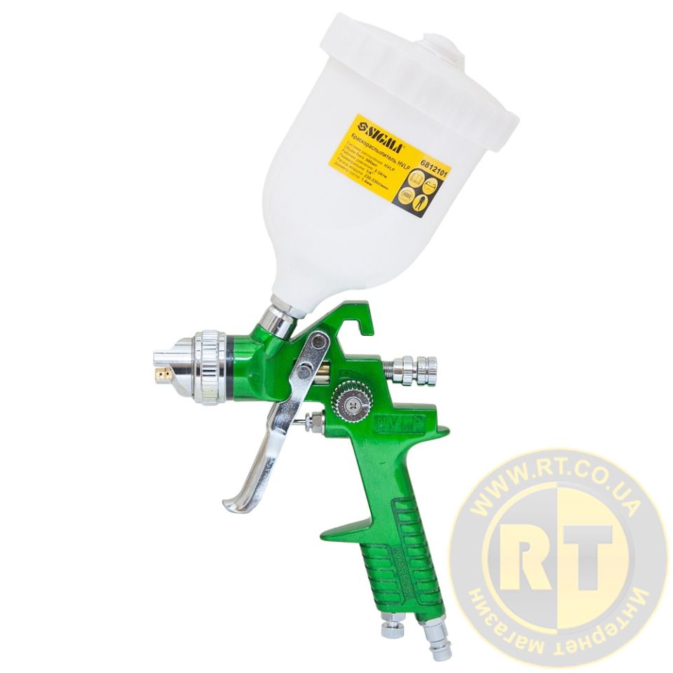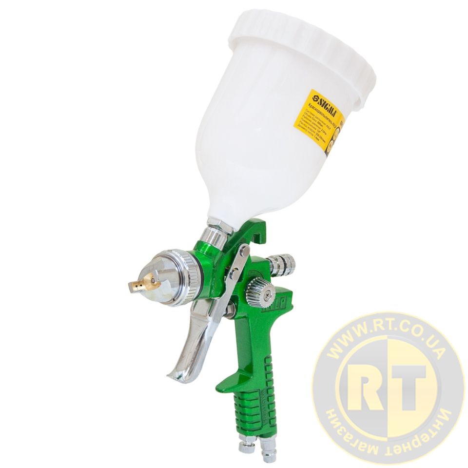 Профессиональный Краскораспылитель HVLP Ø1.3мм 140-280л/мин 3бар в/б 600мл (пласт) зеленый SIGMA (6812101) системы HVLP (большой объем, низкое давление) с верхней подачей краски.