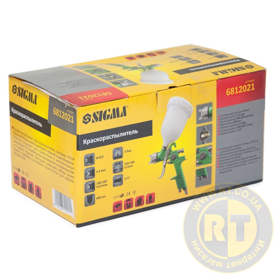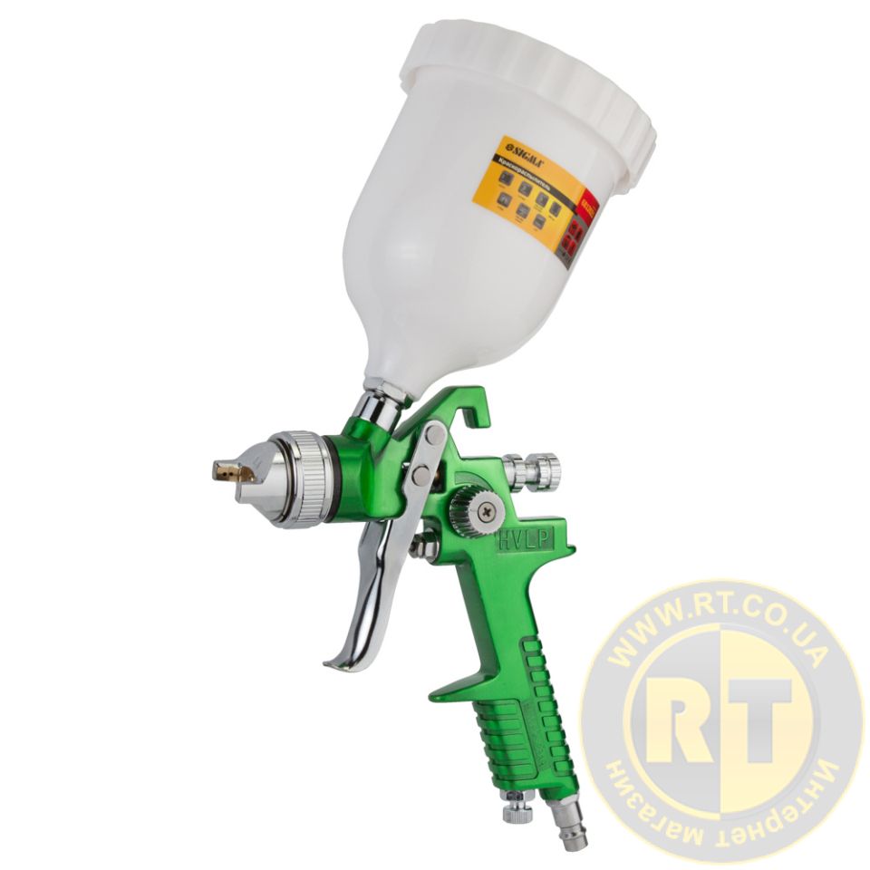 Профессиональный Краскораспылитель HVLP Ø1.4мм 140-280л/мин 3бар в/б 600мл (пласт) зелёный SIGMA (6812021) системы HVLP (большой объем, низкое давление) с верхней подачей краски.