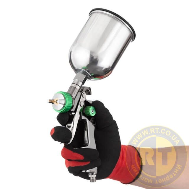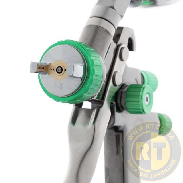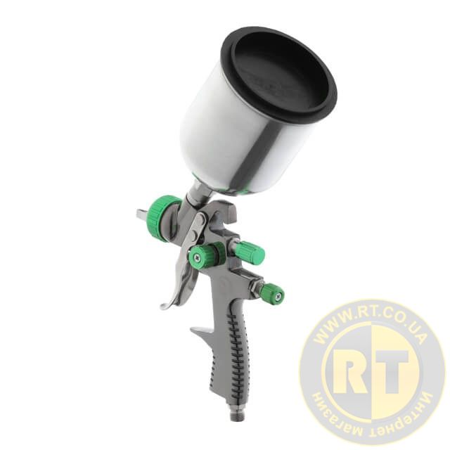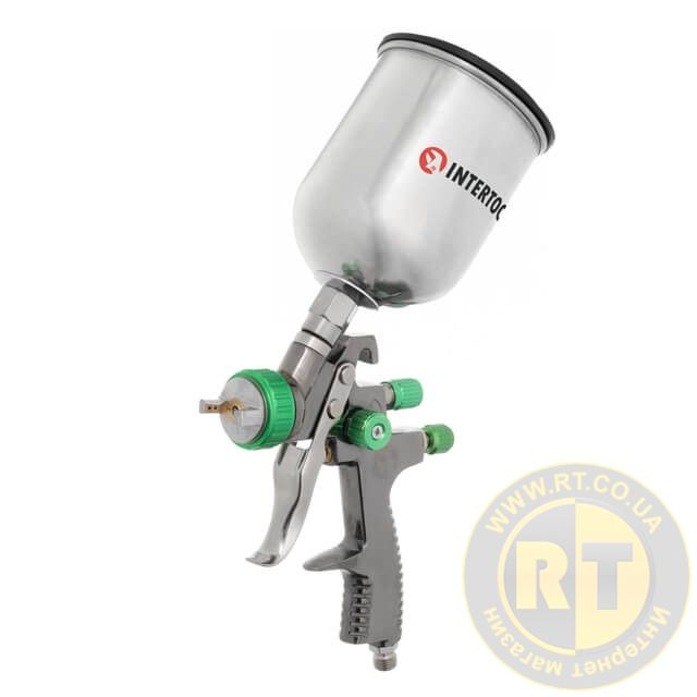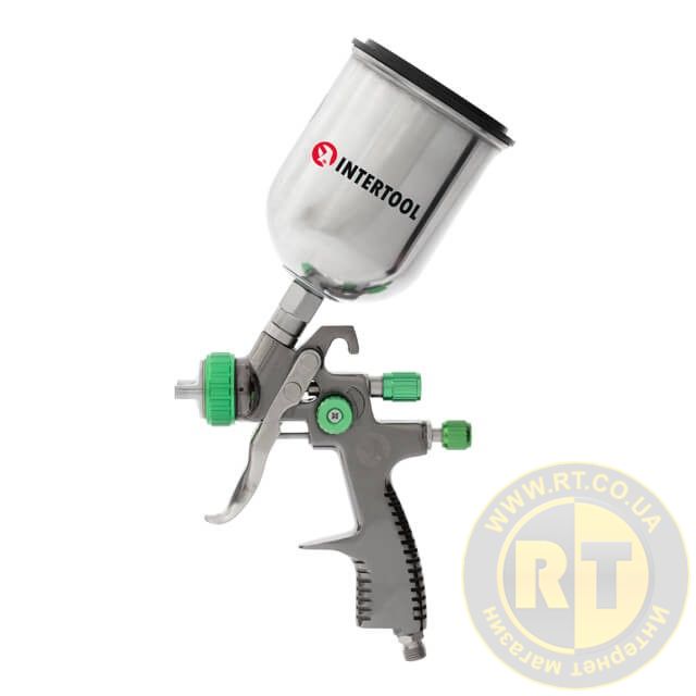 Краскопульт пневматический LVLP GREEN, профессиональный, форсунка: 1,3 мм, верхний металлический бачок: 600 мл, 1,5 бар INTERTOOL PT-0131