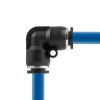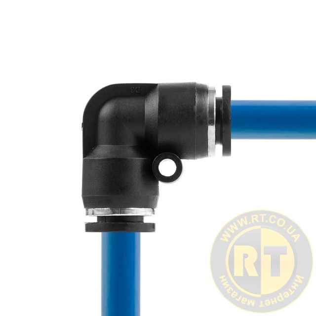 Цанговое соединение L-образной формы применяется при создании пневматических магистралей и для монтажа пневмосистем. Обеспечивает полностью герметичное соединение различных пневматических шлангов без повреждения их поверхности (PU, PE, PA) - полиуретановых, полиэтиленовых, полиамидных и пр.