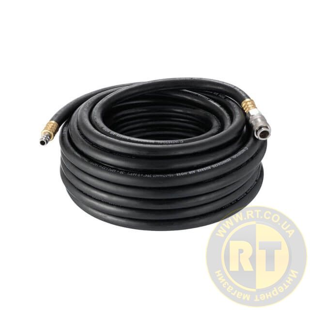Шланг воздушный резиновый армированный используется для воздушных магистралей пневматического оборудования. Отлично подходит для подачи воздуха на высокомощный инструмент во время ремонта автомобилей, забивания гвоздей и скоб, внутренней отделки, покраски и строительства.