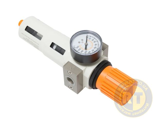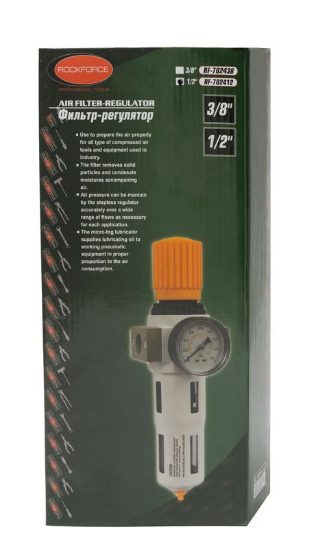 Фильтр-регулятор с индикатором давления для пневмосистемы "Profi" 1/2"(пропускная способность:2800 л/мин,16bar, температура воздуха: 0° до 60°,5мк) ROCKFORCE BAUM AUTO RF-702412