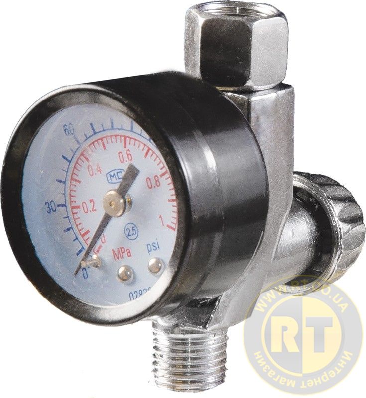 Редуктор для пистолета покрасочного с манометром 0-12 бар ¼" металлический корпус MASTERTOOL 80-8919