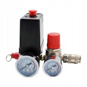 Прессостат 220 В (блок автоматики компрессора) в сборе: прессостат, редуктор, 2 манометра, предохранительный клапан, 2 выхода INTERTOOL PT-9094