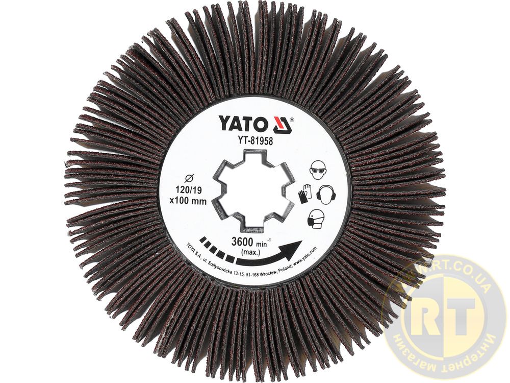 Щетка для шлифовальной машины от абразивных лепестков, Ø = 120/19, широкий 100 мм Yato YT-81958