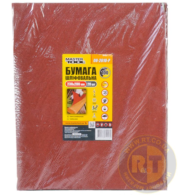 Бумага шлифовальная водостойкая Р100 230×280 мм 20 шт MASTERTOOL 08-2610-Р