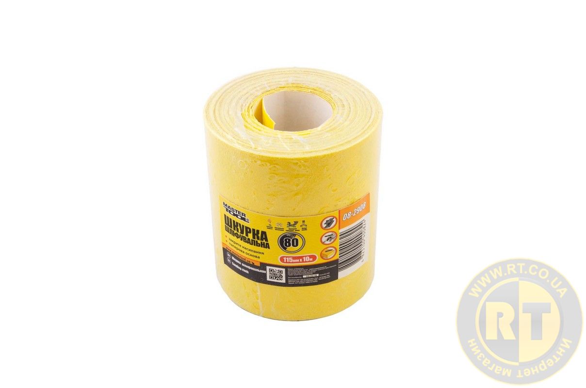 Шкурка шлифовальная на бумажной основе Р80 115 мм 10 м MASTERTOOL 08-2908