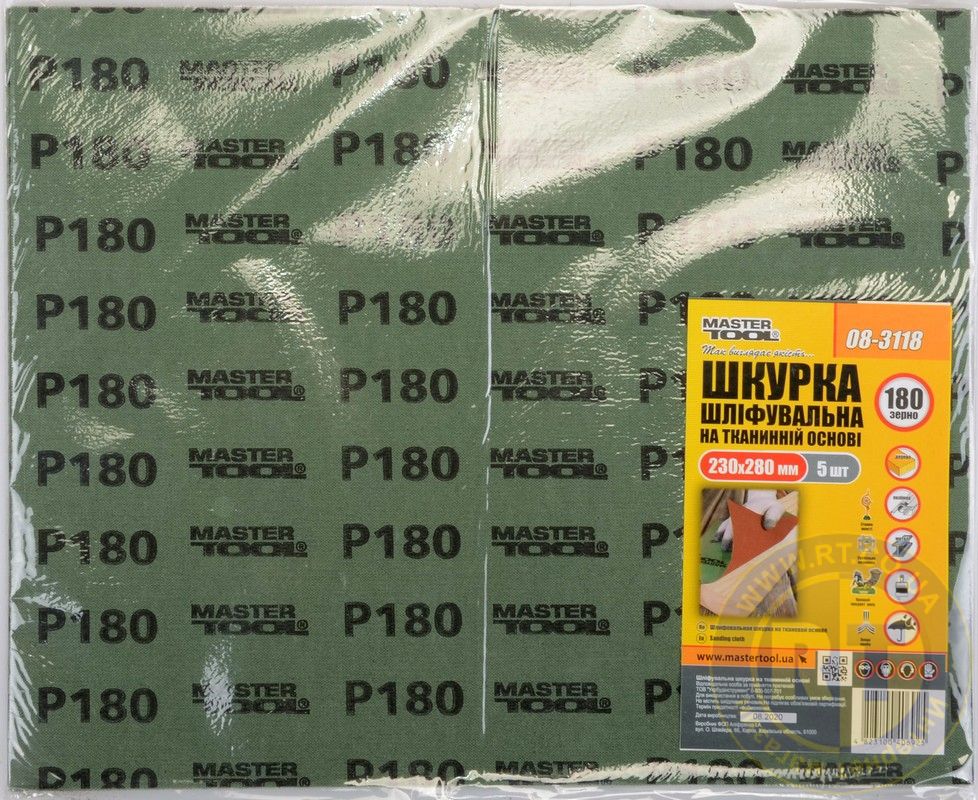 Шкурка шлифовальная на тканевой основе Р180 230×280 мм 5 шт MASTERTOOL 08-3118
